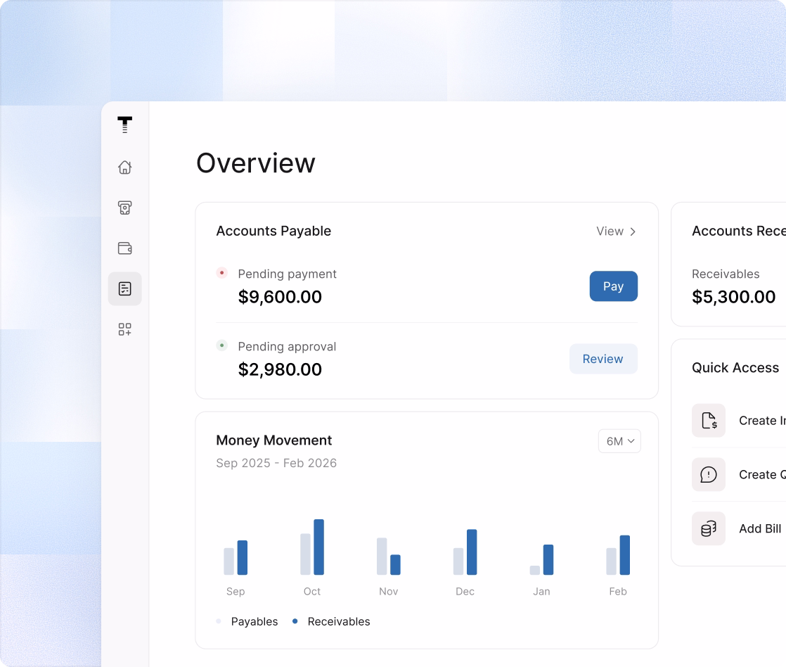 Create and send professional invoices, then get paid via ACH bank transfer or card. Money arrives directly in your Thera Cash account.