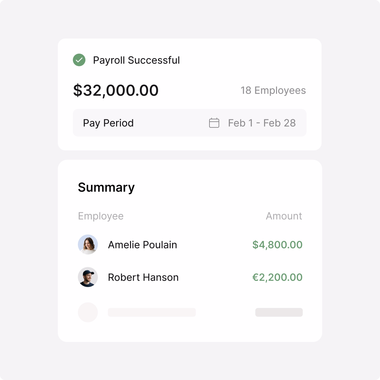 Pay contractors and employees without the complexity. No manual work, no delays.